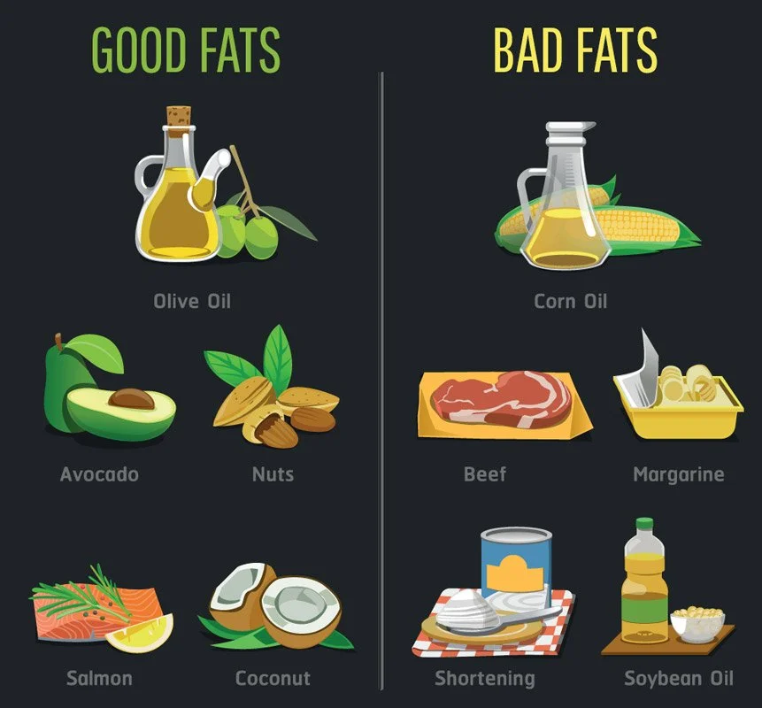 Fats that are chemically altered through engineering or used to cook at high temperatures tend to not be as healthy - things like: fried pork rinds, pimento cheese dip, processed bacon, cream cheese, peanut butter, corn or soybean oil, etc.